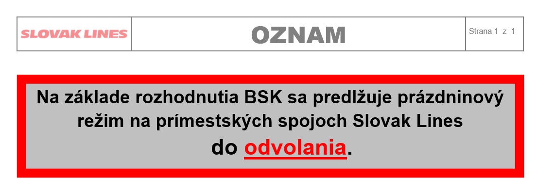SLOVAK LINES a.s. - prázdninový režim
